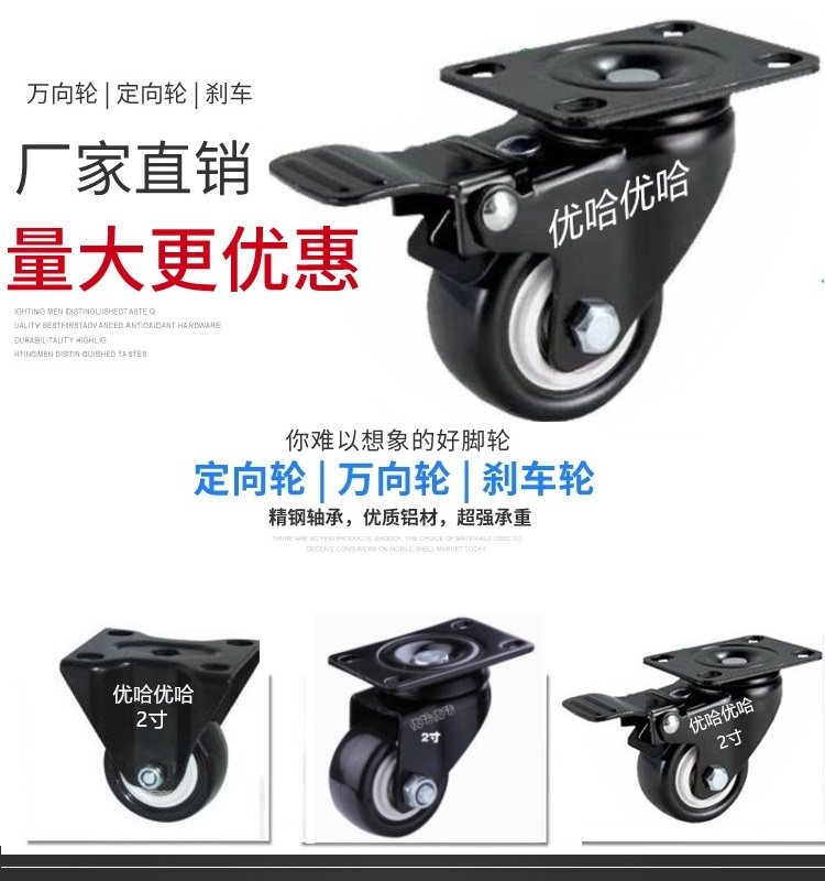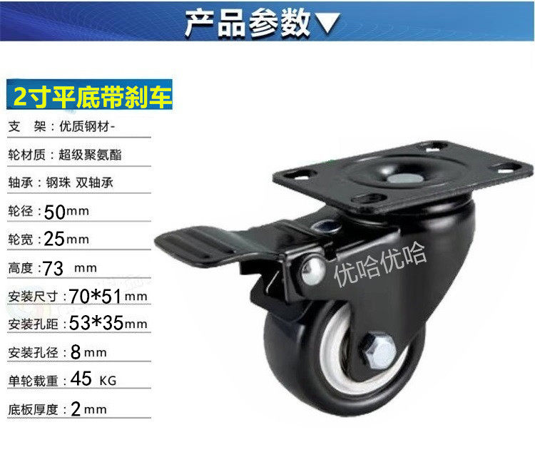 Wheel of wheels 2 inches Heavy double bearing with brake universal wheel sofa castors polyurethane PU pulley rollers