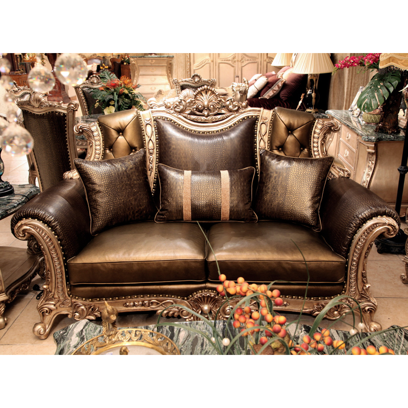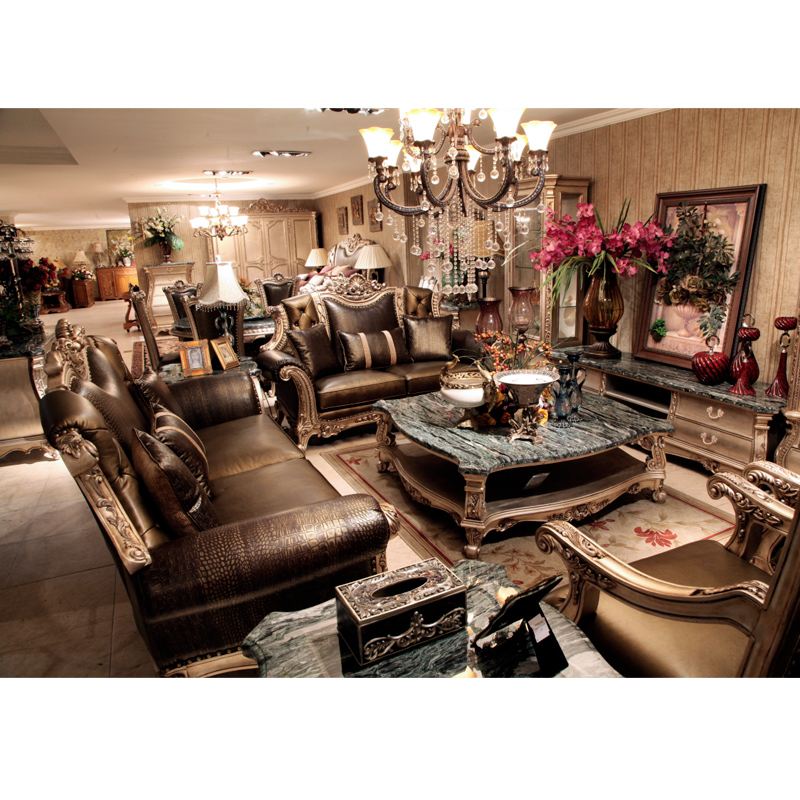 European style leather sofa living room solid wood carved Villa living room furniture custom American leather sofa 123 combination