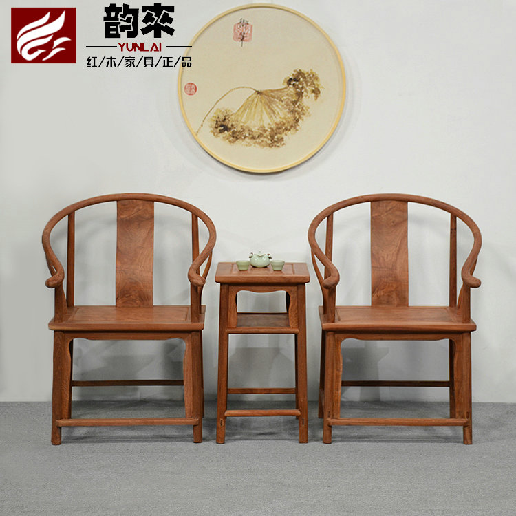 Rhyming Myanmar flower pears wood Ming and Qing Classic circle chair Three sets of solid wood casual chair big fruit purple sandalwood furniture