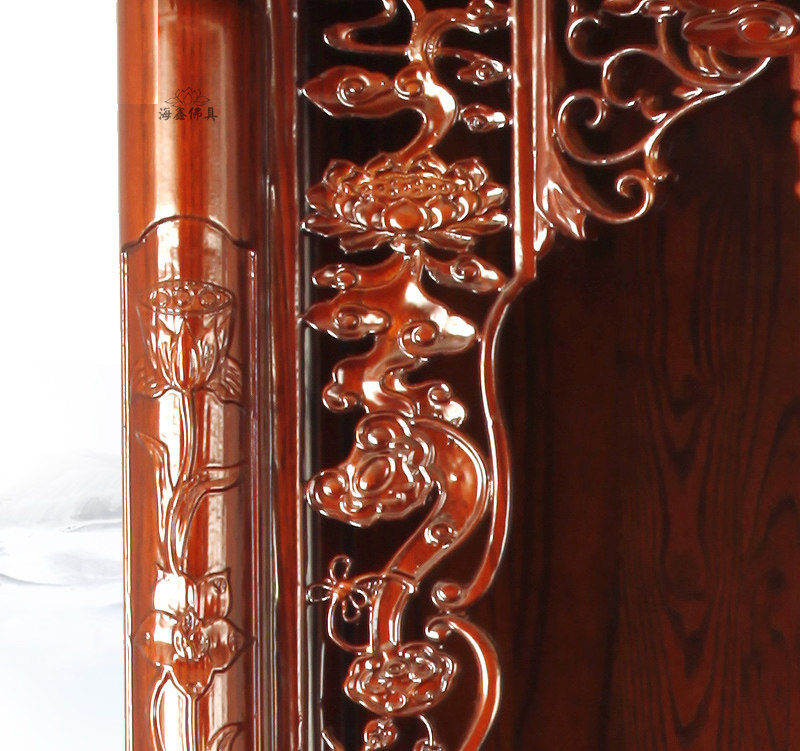 Haixin Buddha Buddhist Supplies Buddha Niche for table Shenlou Standing Cabinet Log Hollowed-out Lotus Guanyin 108 Buddha cabinet