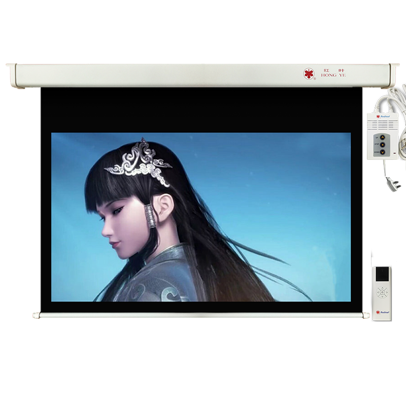 Red Leaf Projection Curtain 75 inch 84 inch 92 inch 16: inch 16: 9 Home HD wall-mounted curtain remote-controlled Lift Electric curtain 4K Home Cinema Cloth White Glass Fiber Custom Anti-Light Projector Silver Screen Electric Curtain