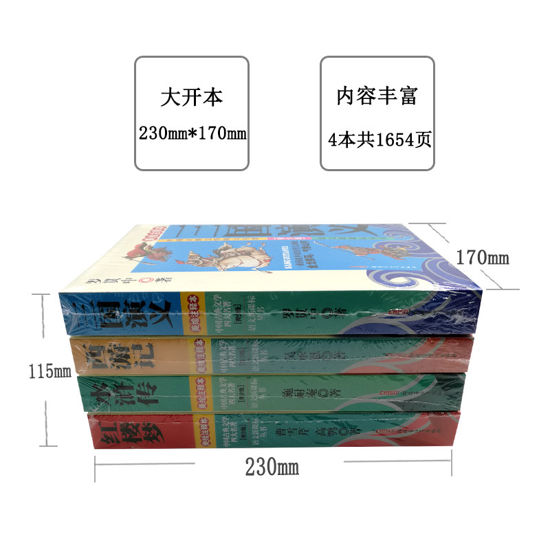 Four famous works A full set of youth color pattern editions for primary and middle school students to improve reading interest Modern vernacular inspirational recommended books Traditional literature Romance of the Three Kingdoms Journey to the West Water Margin Dream of Red Mansions