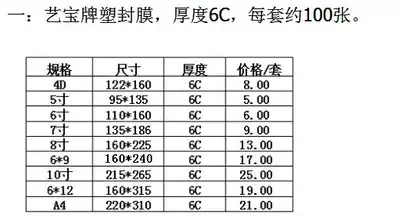 A4 (8*12)Yibao brand plastic sealing film Scallop film Card protection film Scallop paper Plastic sealing paper photo film