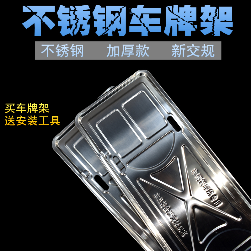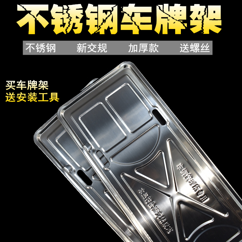 New traffic rules stainless steel license plate frame car thickened license plate frame anti-theft license plate frame set license plate frame tray frame - Taobao