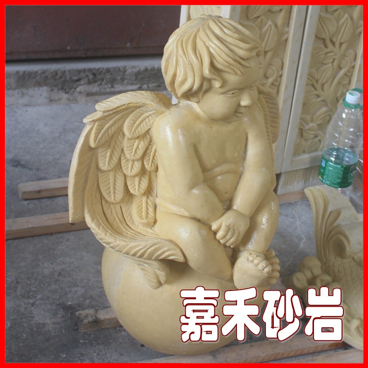 Sandstone glass steel sculpture round carving garden park decoration entertainment beauty salon decoration angel