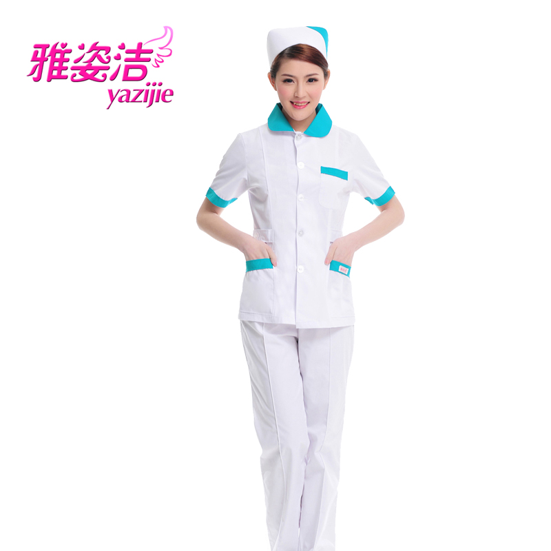 Elegant Nurse Service Short Sleeve Summer Round Collar Middle Open Two Style Oral Dental Outpatient Work Clothes Pants 2 pieces