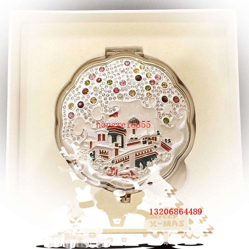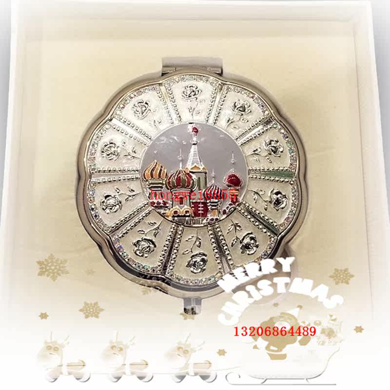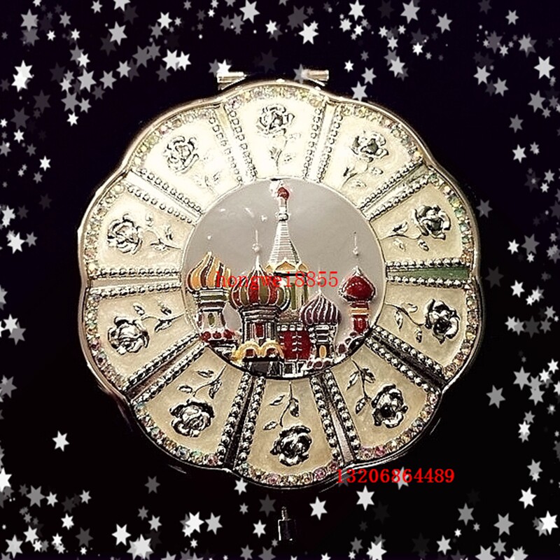 Russian style makeup mirror Portable folding diamond-encrusted small mirror gift box European-style ladies double-sided mirror