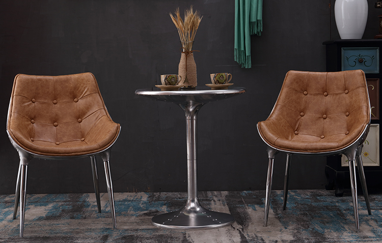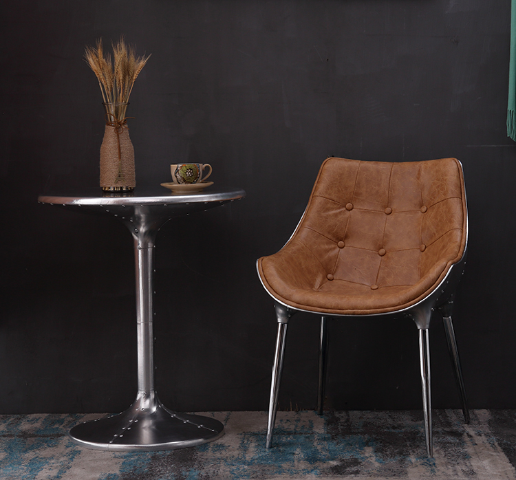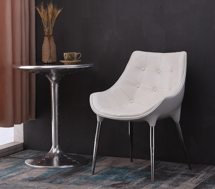 Rivet Space Aluminum Leather Tulip Small Table Tea Table Creative Glass Fiber Home Innate Silver Round Retro Industrial Style
