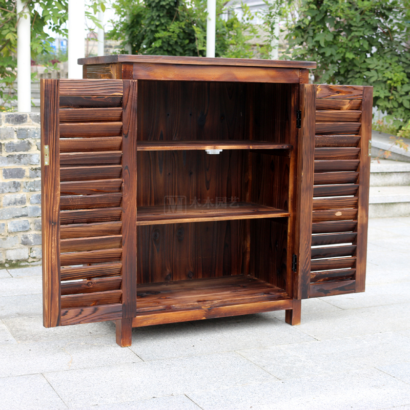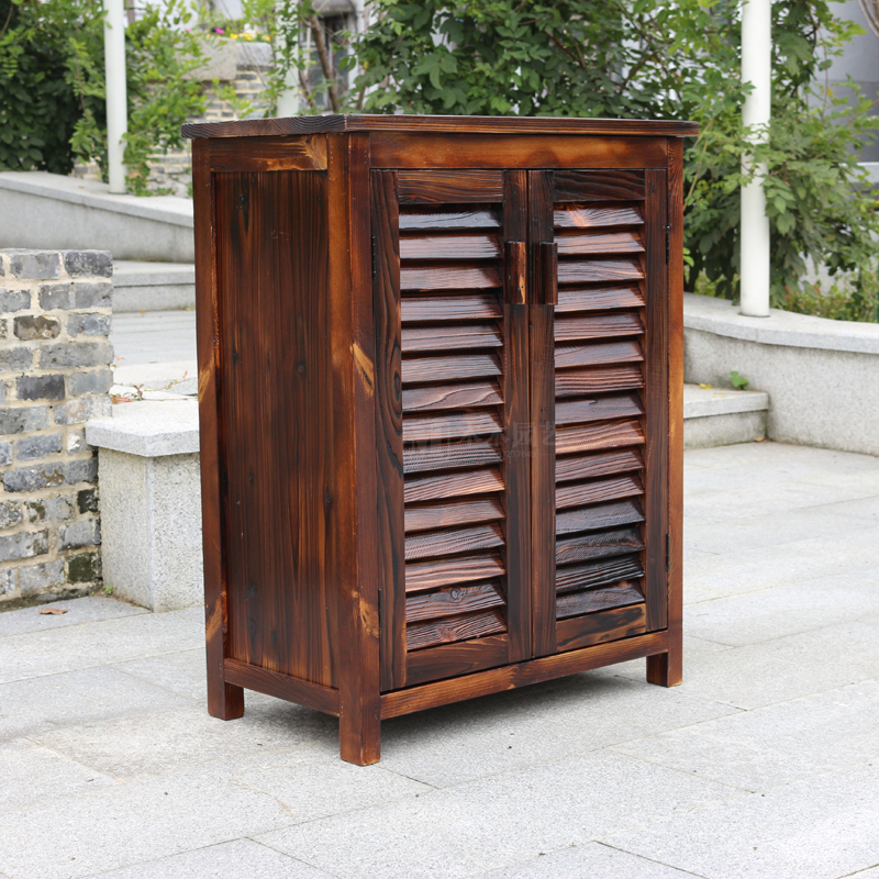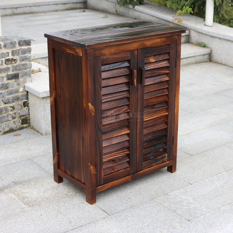 Solid wood carbonized balcony corridor storage cabinet outdoor courtyard shoe cabinet shutter door dining cabinet indoor wooden storage cabinet