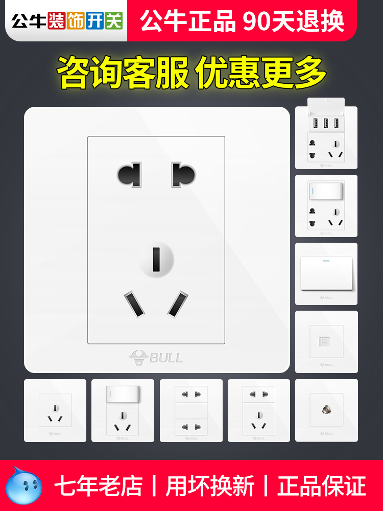 Positive five-hole 10A oblique five-hole 10A three-position USB five-hole socket One open single control three-hole two open double cut five-hole three-hole air conditioning socket 16A five-hole 16A socket Four-hole socket