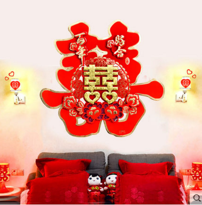 Wedding celebration supplies Happy word door stickers Wedding door Happy word creative three-dimensional happy word stickers Suede paper-cut wall stickers