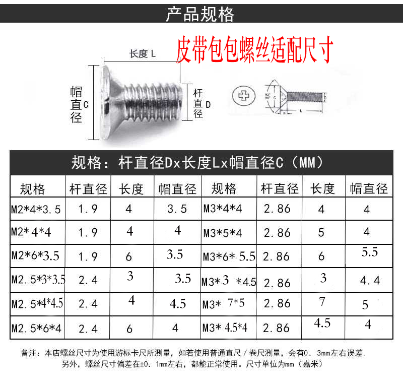 Belt screw Screw belt buckle head flat head fixing small screw Flat machine countersunk head m2m2 5m3m4m5 Cross