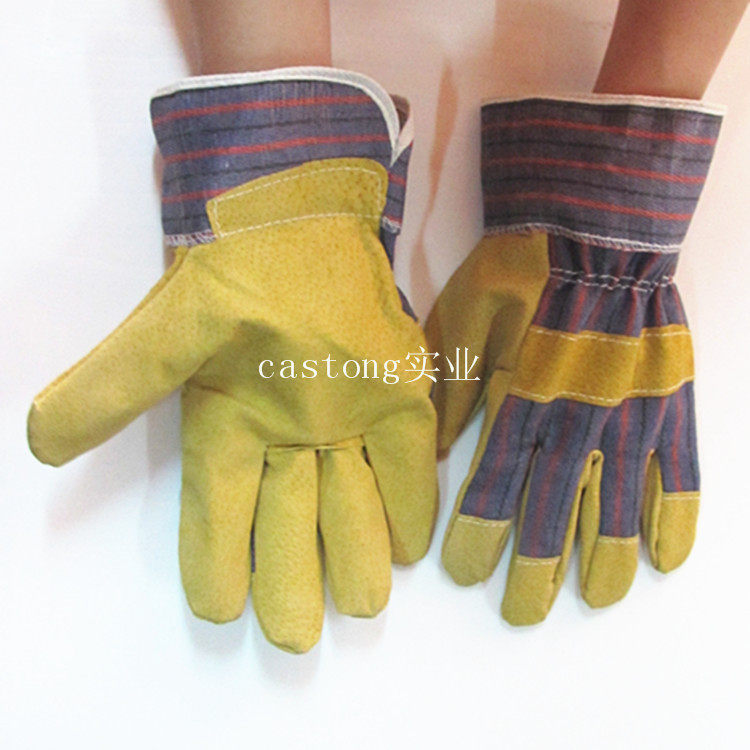 Labor Protection Gloves Large Red Towels Gloves Short Leather Electro-Welded Gloves Work Gloves Protection Gloves Wear Resistant Pig Leather Gloves