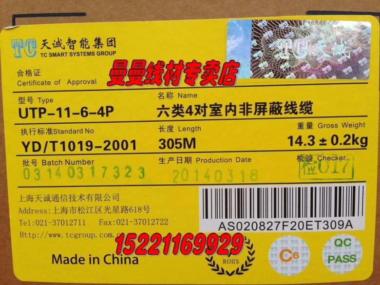 Original Tiancheng Category 6 4 pairs of unshielded cable Category 6 network cable Tiancheng Category 6 network cable