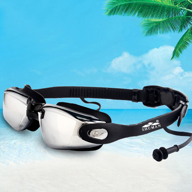 Large frame swimming goggles waterproof and anti-fog swimming goggles even body earplugs large children adult men and women flat light nearsightedness swimming glasses tide