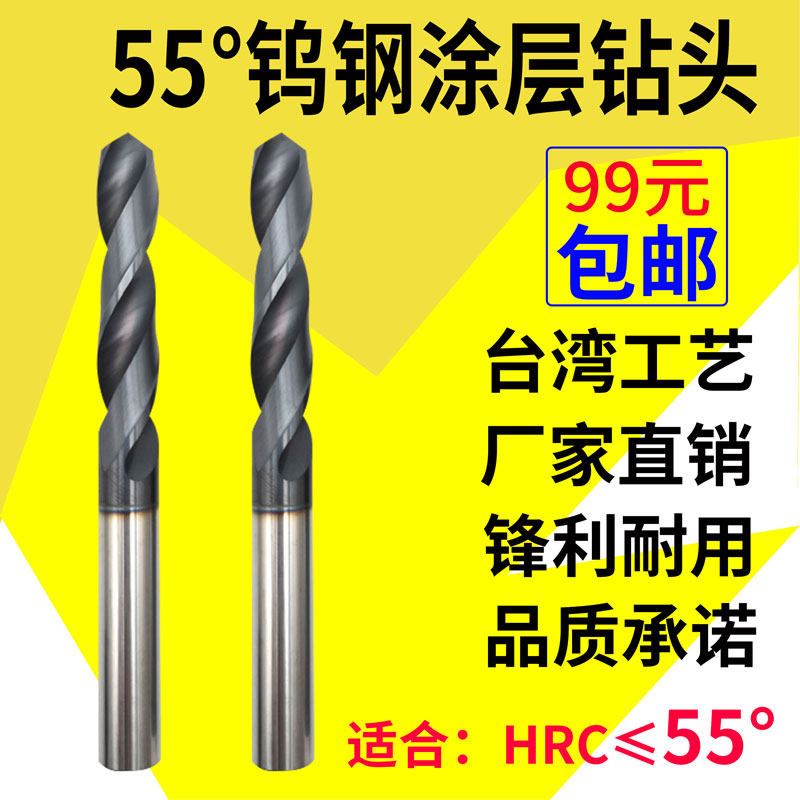 Taiwan imports 55 degrees ultra hard whole hard alloy coated tungsten steel drill with black plated titanium stainless steel twist drill