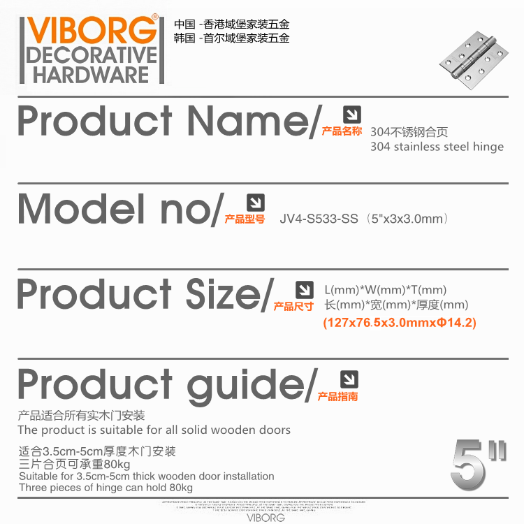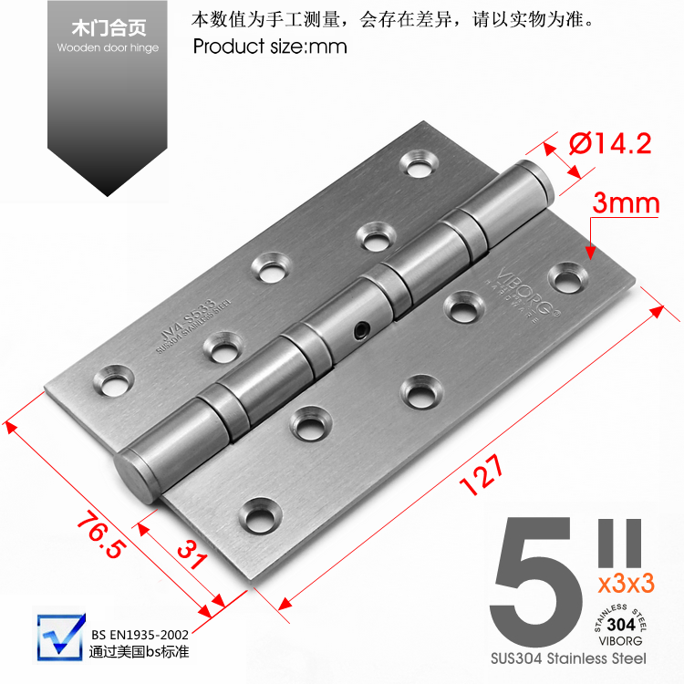 Hong Kong Yubao 5 inch 304 stainless steel wooden door door hinge silent bearing hinge flat hinge S533 monolithic