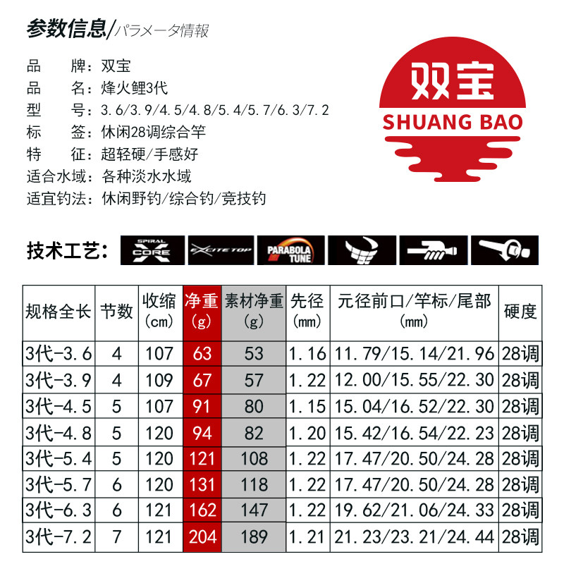 Beacon Carp 3 generation 3 6 meters(ultra-light 28 tones)(only 53 grams) Beacon Carp 3 generation 3 9 meters(ultra-light 28 tones)(only 57 grams) Beacon Carp 3 generation 4 5 meters(ultra-light 28 tones) (only 57 grams) Beacon Carp 3 generation 4 5 meters (ultra-light 28 tones) (only 57 grams) Beacon Carp 3 generation 4 5 meters (ultra-light 28 tones) (only 57 grams)