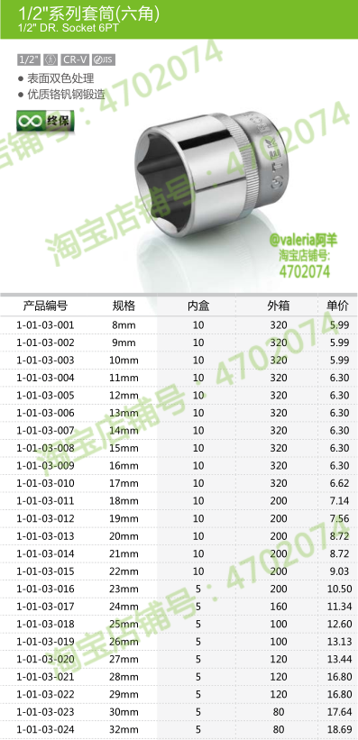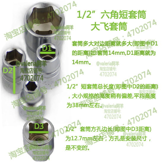 TEKIRO Taiwan Tools 1 2 series Sleeve Six - angle Sleeve Sleeve Large Fly Sleeve Outer Hexagonal