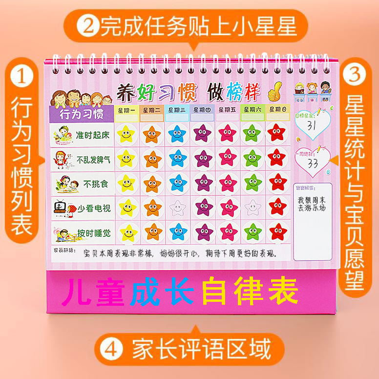 Early Childhood Child Growth Self-discipline Table Rewards Sticker Schedule Home Praise Punishment Credits Card Elementary School Students Good Habits Life Behaviors Develop Learning Baby Performance Record Plan Family Table Calendar
