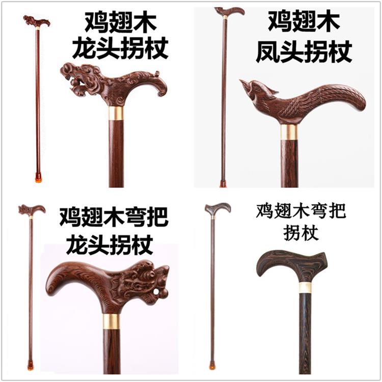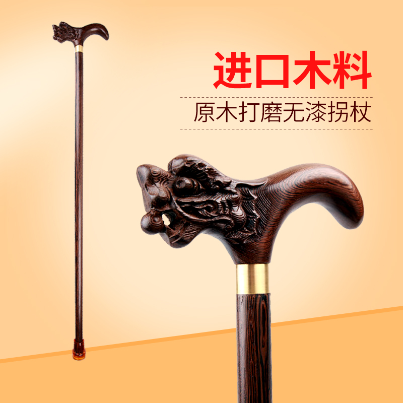 Solid wood old man crutches mahogany chicken wings wood old man anti-slip crutch dragon head cane wood hiking pole