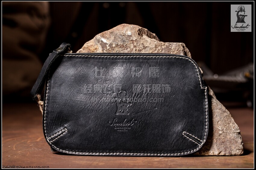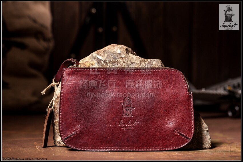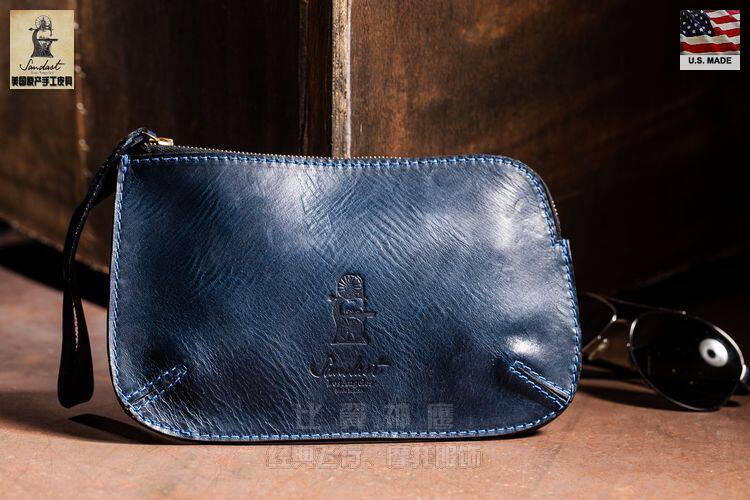 Sandast American handmade Horween cowhide retro mobile phone sundries document handbag pipe smoking bag