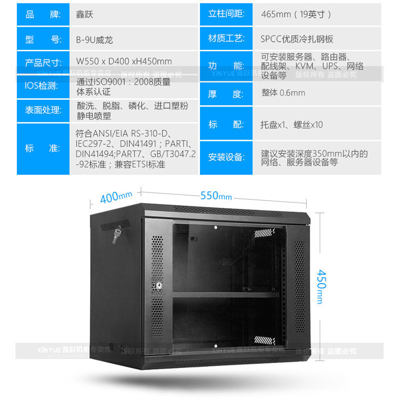 Network cabinet 9U wall cabinet 0 45m wall switch monitoring amplifier weak power 19 inch small cabinet