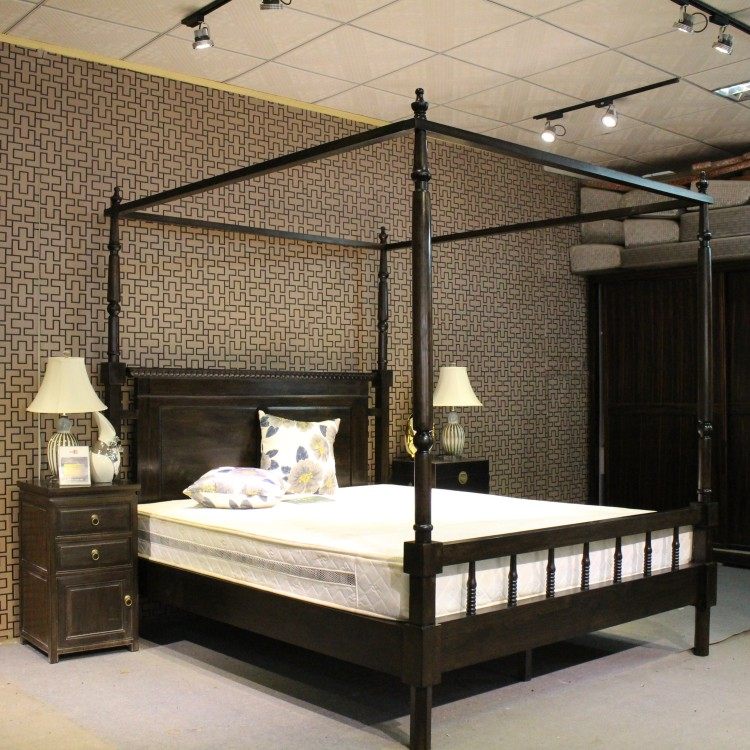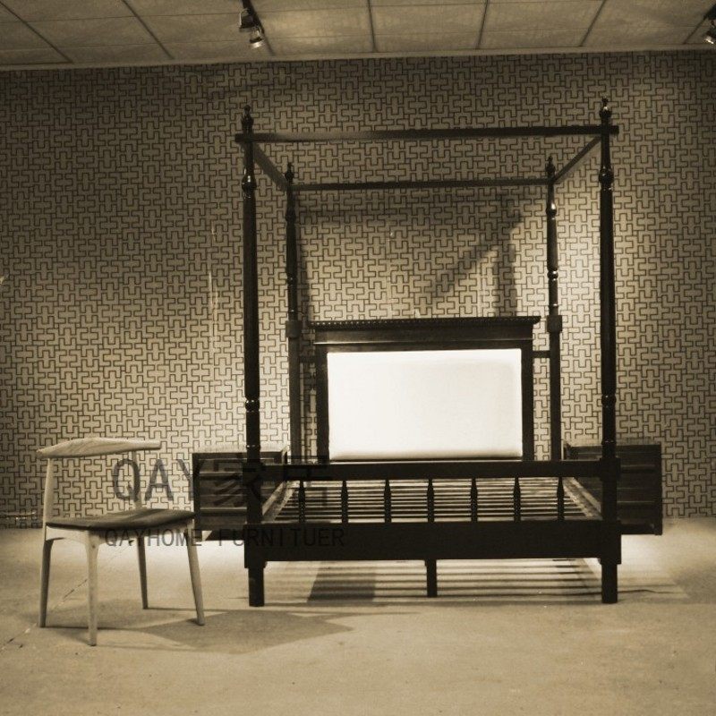 QAY home Southeast Asian style furniture full solid wood four-column bed Moroccan American old elm frame bed custom-made