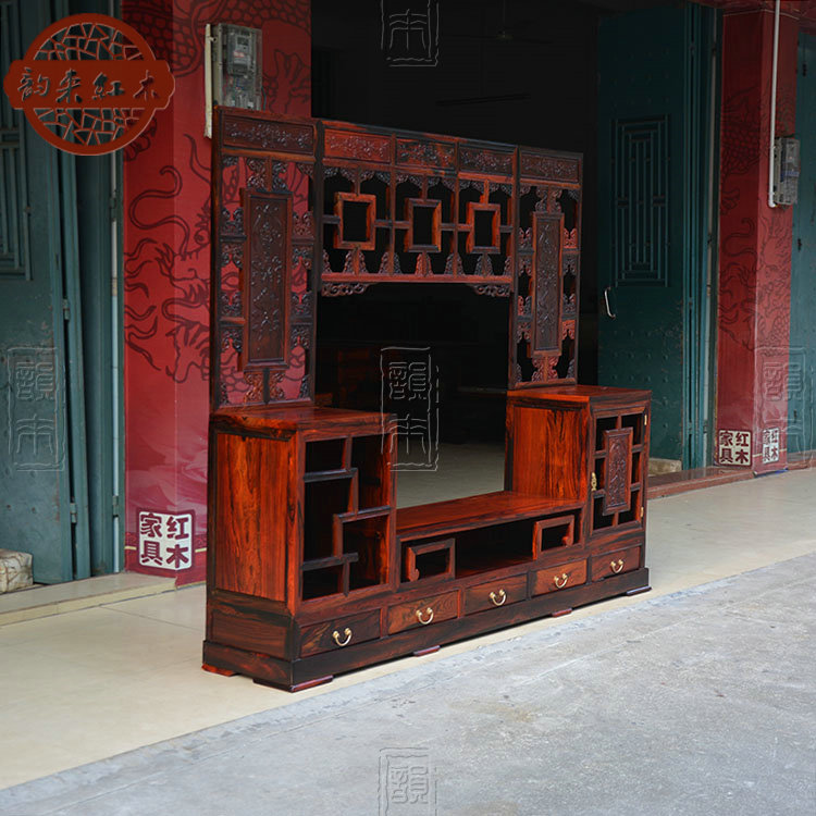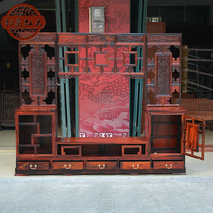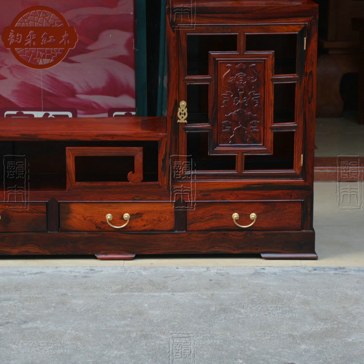 Lao great red sour branch 2 m 2 TV cabinet film and TV cabinet with carved background wall cabinet combination red wood living room furniture