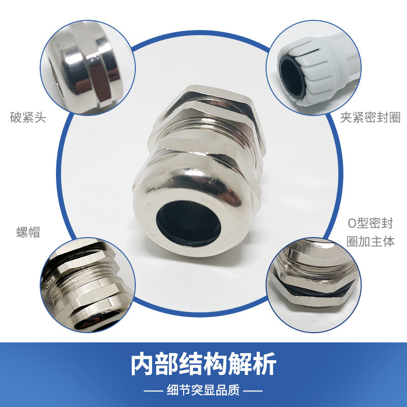 Metal cable waterproof connector locking Glan head Copper nickel plated fixed metric m German pg packing letter Glan head