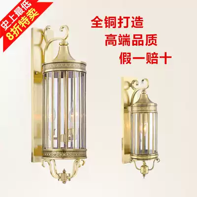 European style all copper outdoor wall lamp cylindrical American outdoor balcony large wall lamp hotel door post waterproof long wall lamp