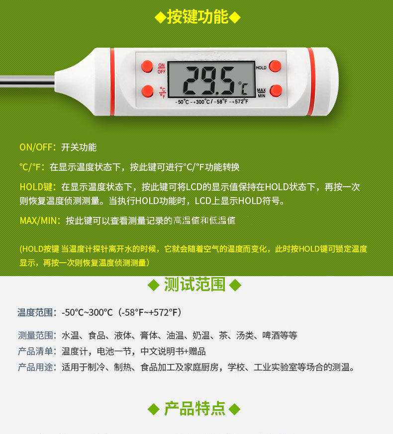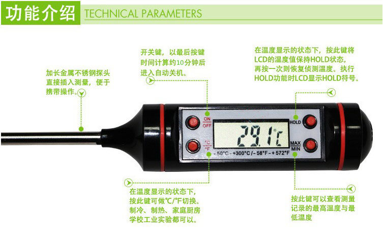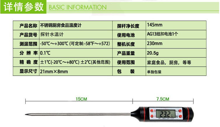 Household food thermometer kitchen milk powder measuring water temperature meter food liquid baking fried oil temperature meter probe milk bottle
