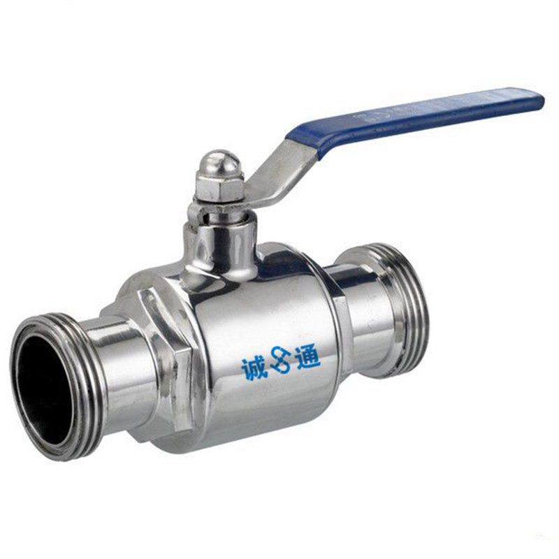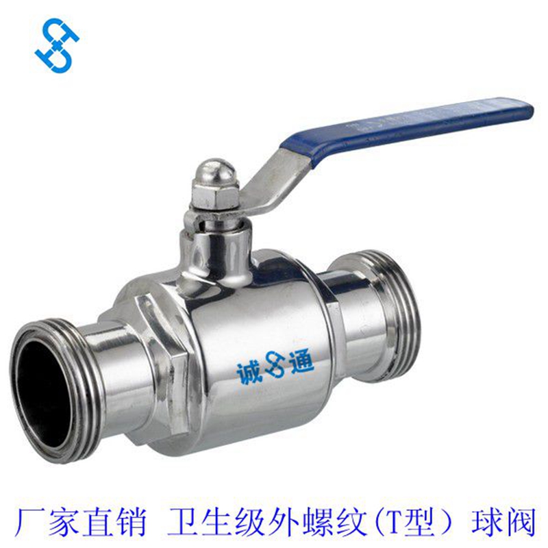 Manufacturer 304316L stainless steel food hygienic level external thread T type threaded round threaded manual straight ball valve