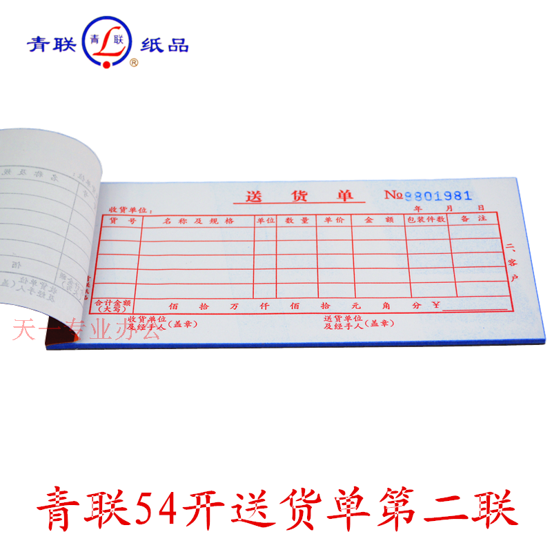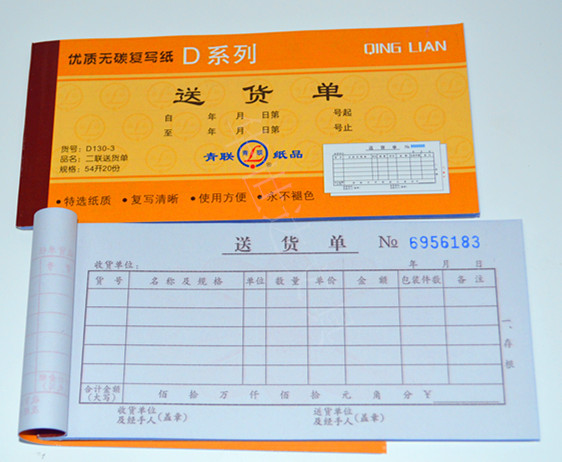 Youth League No Carbon Rewritten Two United Triple Delivery Slip Bill D130-3 Sales Slip 54 open 2 3 couplets list