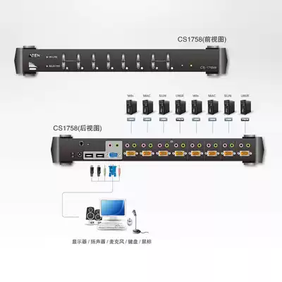 ATEN Hongzheng CS1758 8-port USB PS2 hybrid VGA Rack-mounted KVM Switch 1920*1080