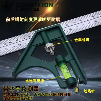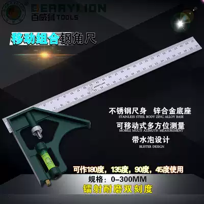 Stainless steel combination angle ruler Multifunctional woodworking horizontal movable right angle ruler Steel plate ruler 45 degree turning ruler