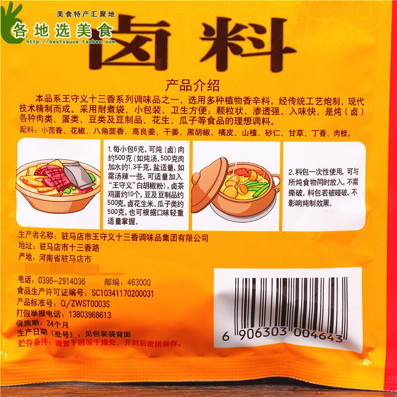 Cumin, pepper, star anise, galangal, dried ginger, black pepper, orange peel, hawthorn, amomum, licorice, clove, cinnamon, etc. The actual information on the product packaging shall prevail