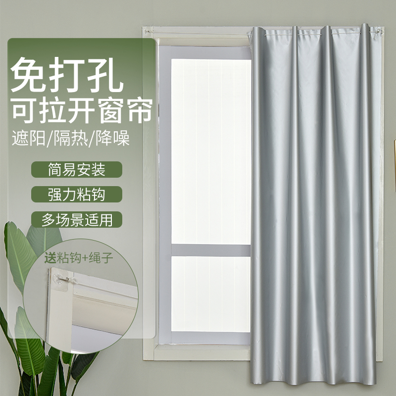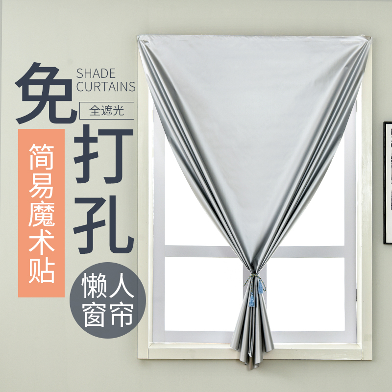 Full shading cloth Curtain shading cloth Bedroom simple punch-free installation light blocking sunscreen insulation velcro hook type