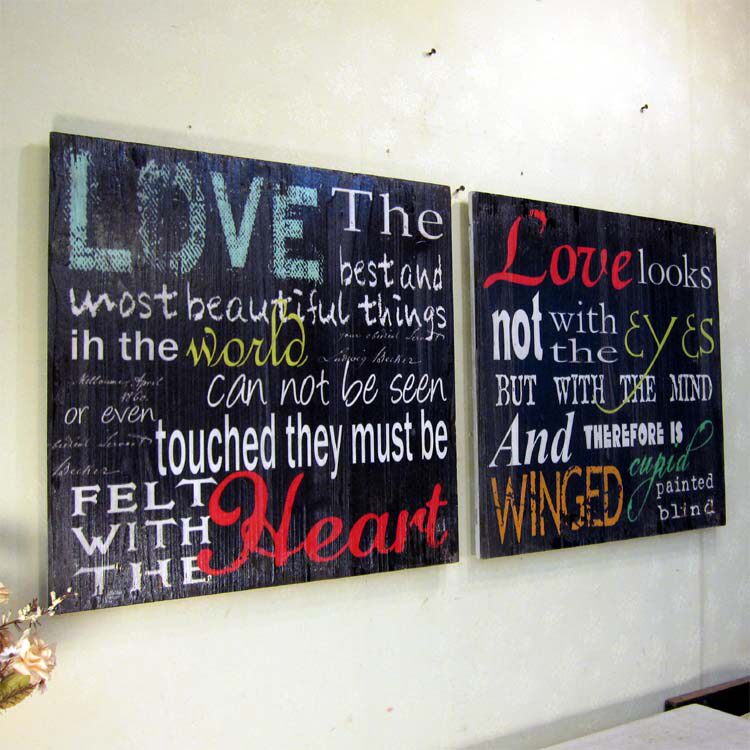 Black Wooden Board Painting Retro Make Old English Love Phrase Hung Board Painting American Style Bar Café Decoration Painting
