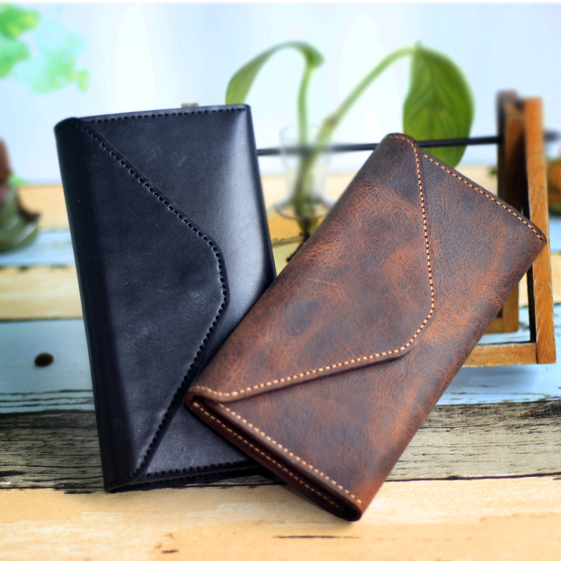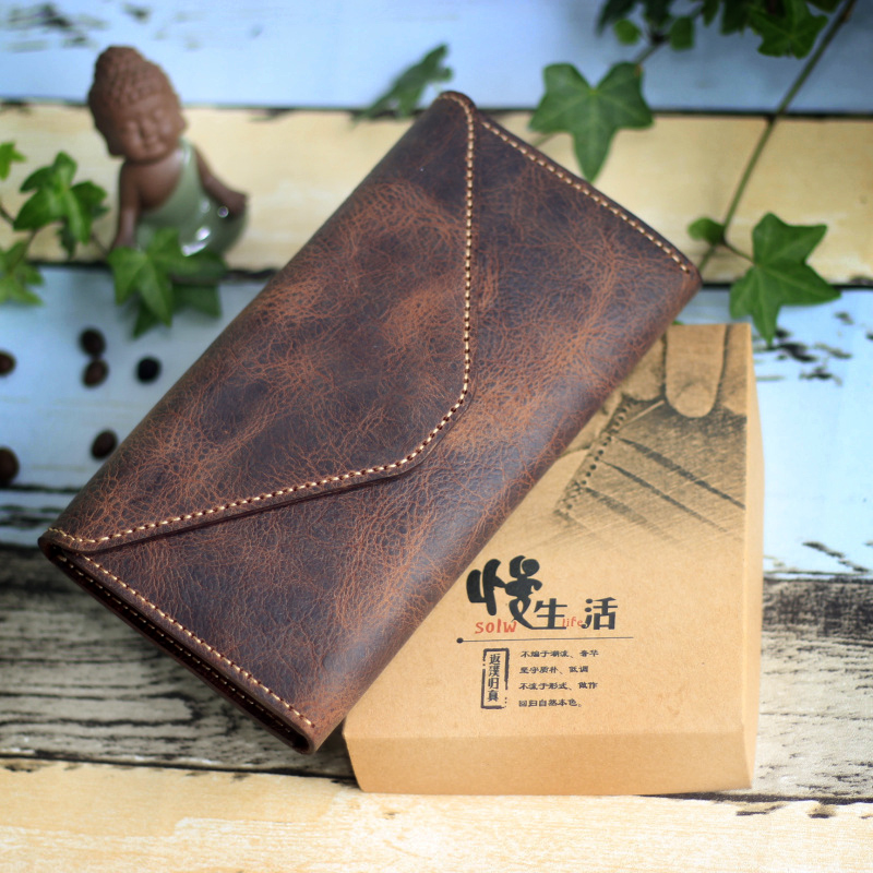 Handmade leather Mad Horse Leather Long Money Gripping Head Layer Cow Leather Wallet Men's Long Version Retro Pure Handmade Cow Leather Money Clip