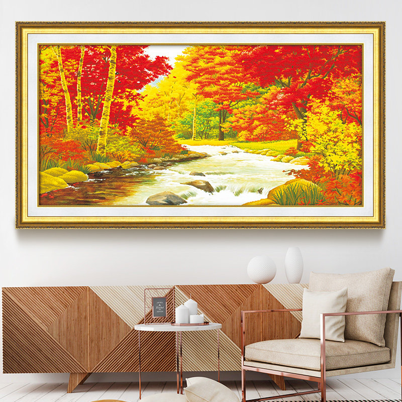 Ks scenery Cross embroidered line embroidered new living room freshener brief modern simple embroidered with big picture Bite golden autumn