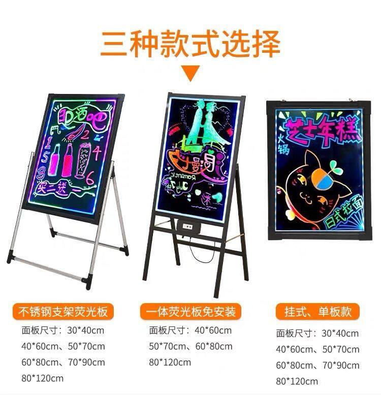 Vertical shop night market stall LED billboard display board blackboard luminous commercial silver light word board advertising shelf