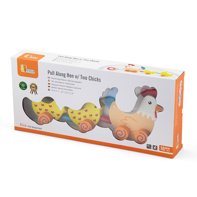 VIGA Meritocracy Drag Animal Fur Caterpillar Children Pull Away Toy Cart Baby Learn Step Puzzle Pull Cord Mother-son Chicken
