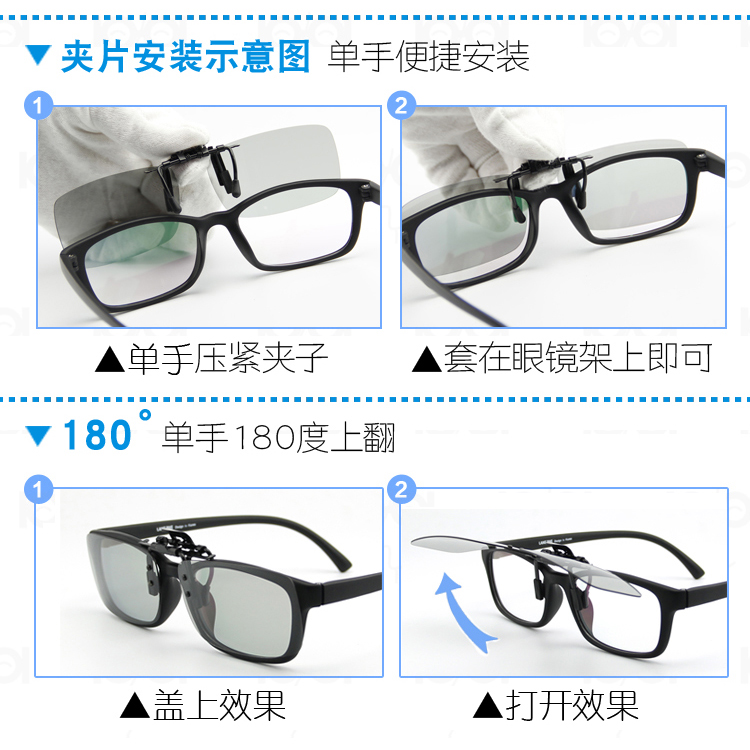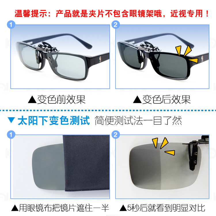 Flip sunglasses night vision discoloration polarized glasses clip sunglasses male myopia driving fishing female anti-UV