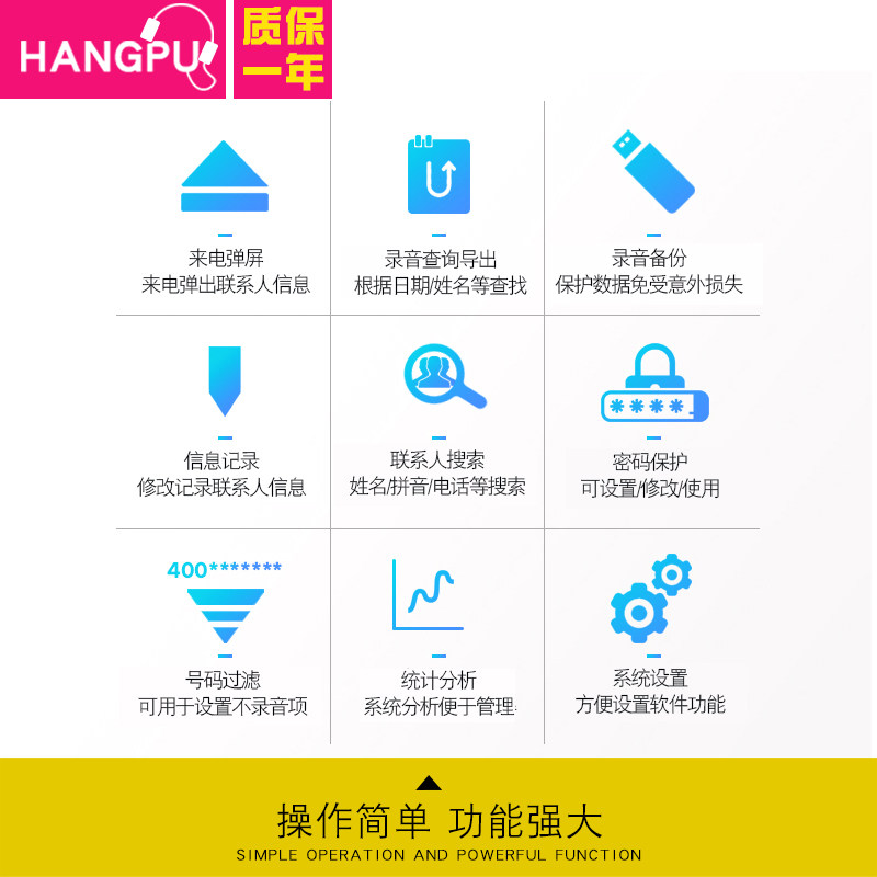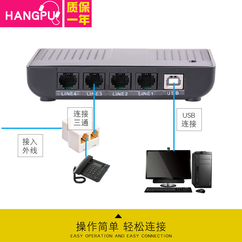 Hangpu HP604 telephone recording box recording device system phone headphones 4-way USB recording box 4-way recorder caller play screen