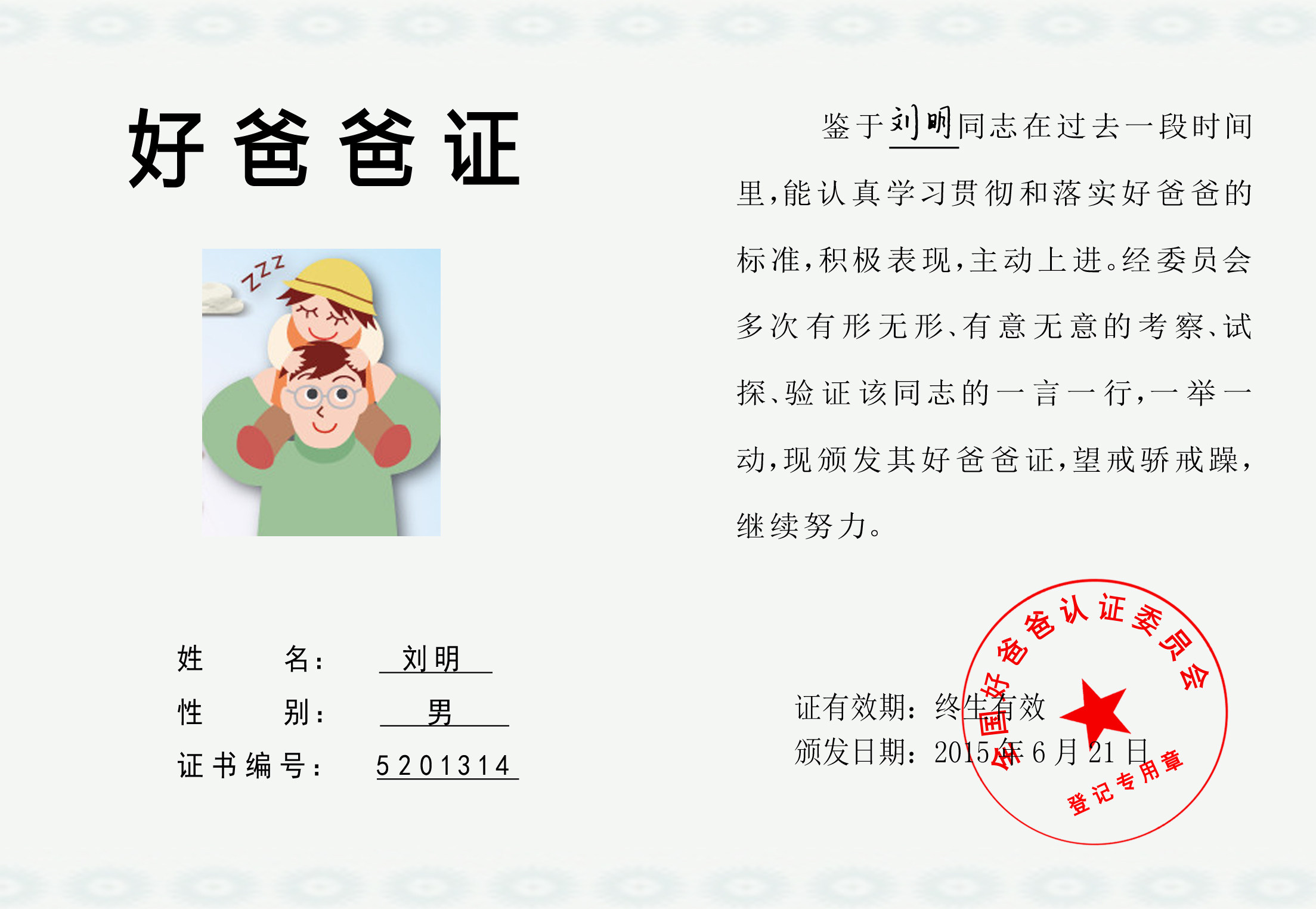 Good Dad Certificate Good Father's Certificate DIY Creative Custom Gift China Good Dad documents Father's Day