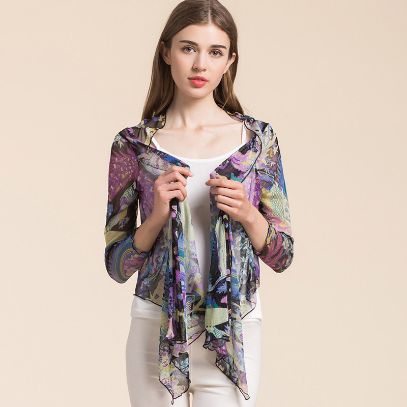 Yue Kou summer silk sunscreen clothing mesh shawl small jacket female mulberry silk thin section outer tower sunscreen clothing air-conditioning shirt