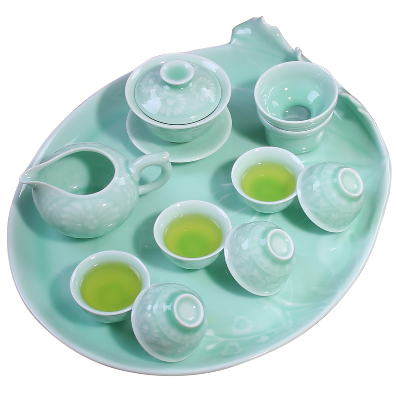 Celadon kung fu tea set set ceramic teapot tea sea tea cup tea plate exquisite gift box packaging nationwide