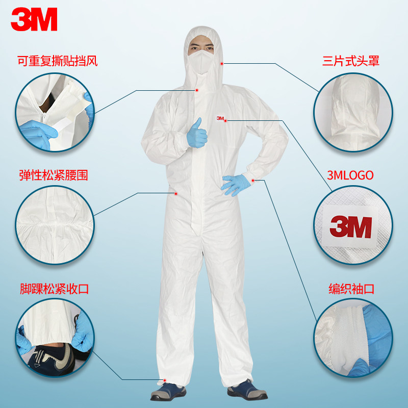 3M protective clothing anti-static dust work dust-free clothes white hooded jumpsuit men and women factory workshop breathable