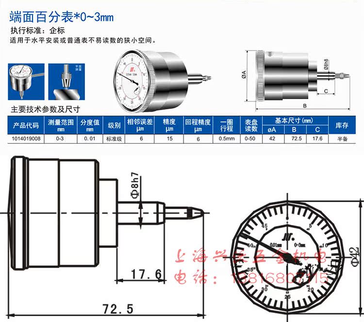 Sichuan Chengdu Quantum End Face Dial Gauge 0-3 Accuracy 0 01-01 Sichuan Card End Face Table Vertical Indication Table Surface 42-Taobao